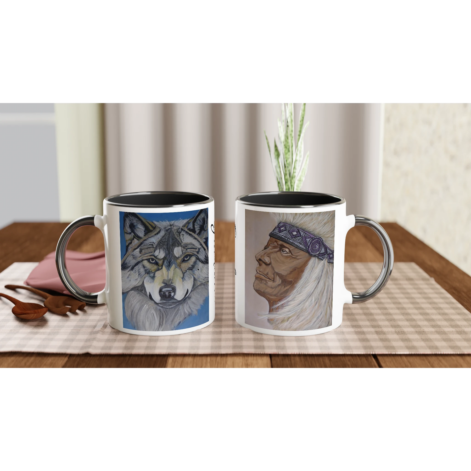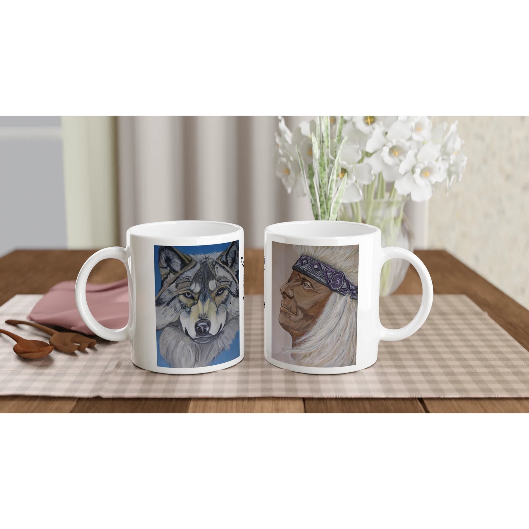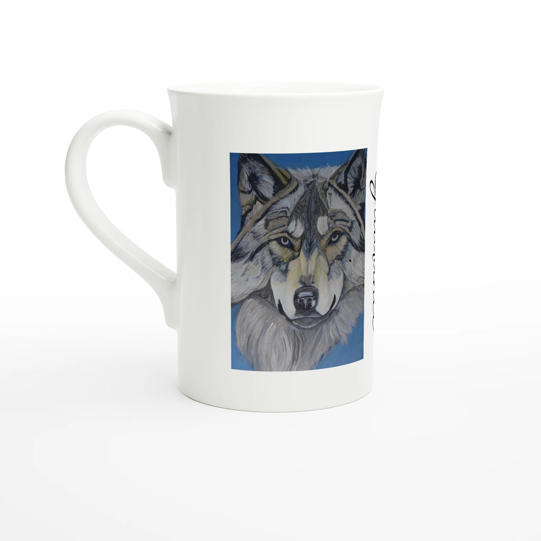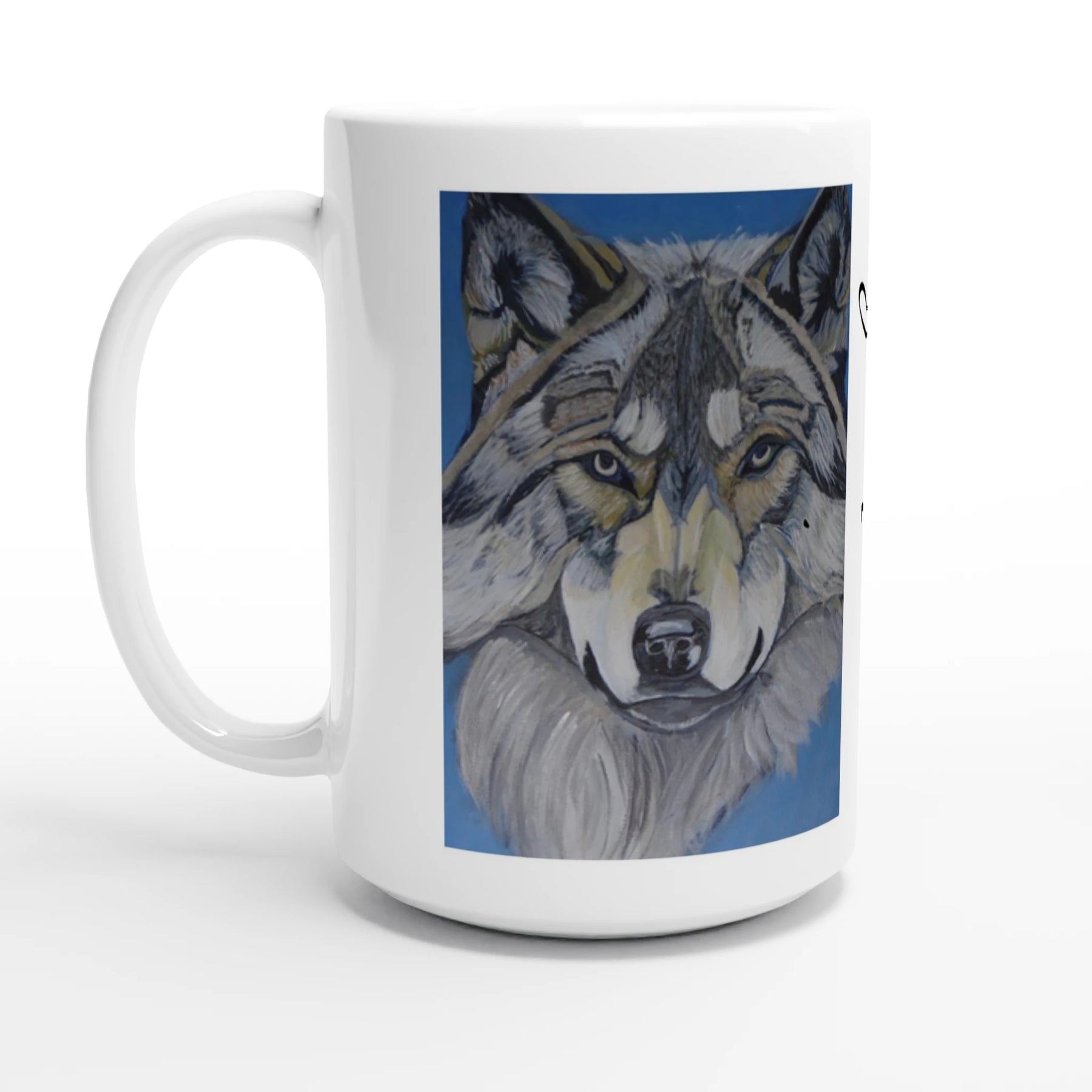 Beautiful wolf spirit art mug featuring original Pathfinder Art. Perfect for nature lovers & wildlife enthusiasts. High-quality ceramic with stunning wolf design
