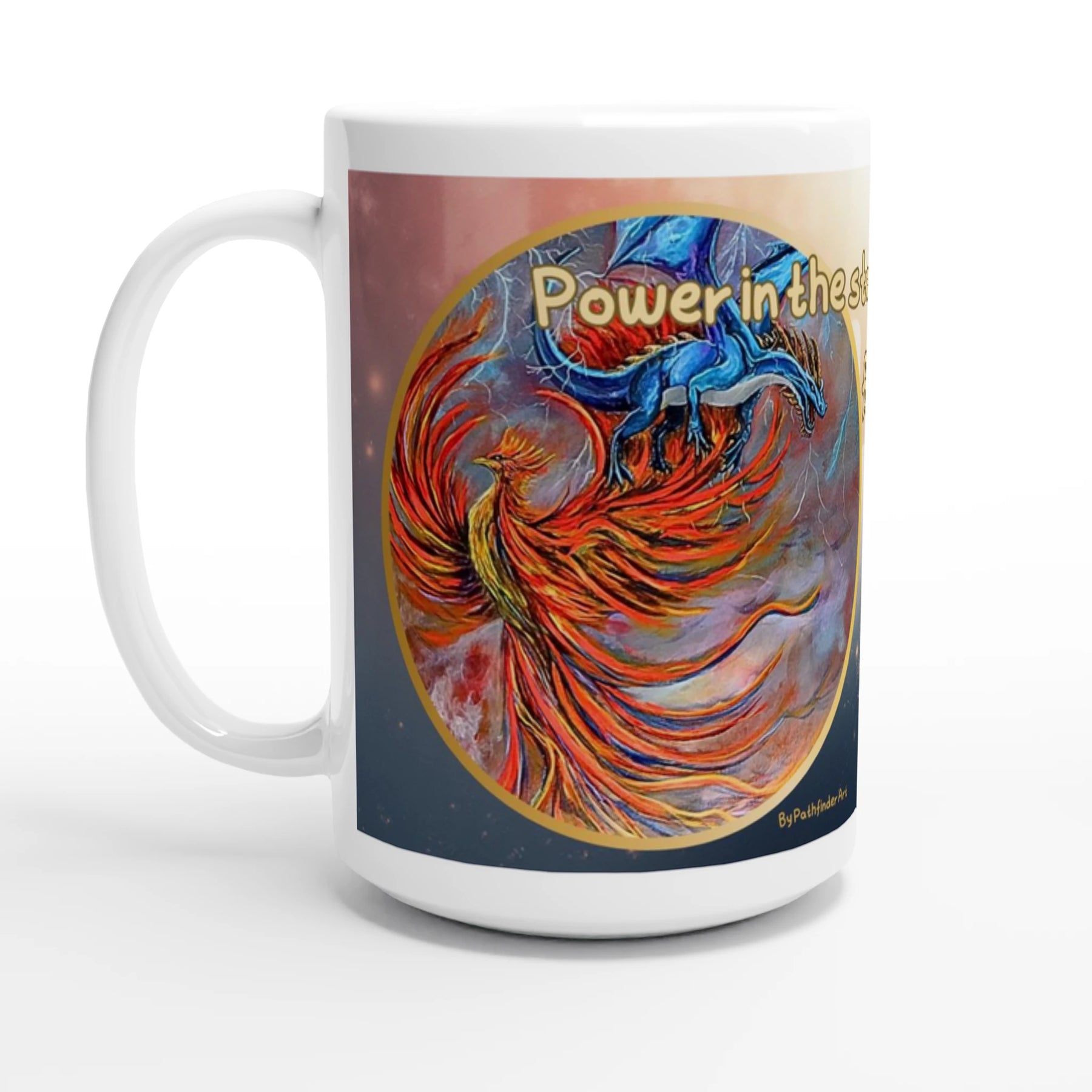 Experience the energy of transformation with The Power and the Rebirth, featuring the original Pathfinder Art painting of a blue lightning dragon and a rising red phoenix. Together they embody strength, renewal, and the unstoppable spirit of rebirth.